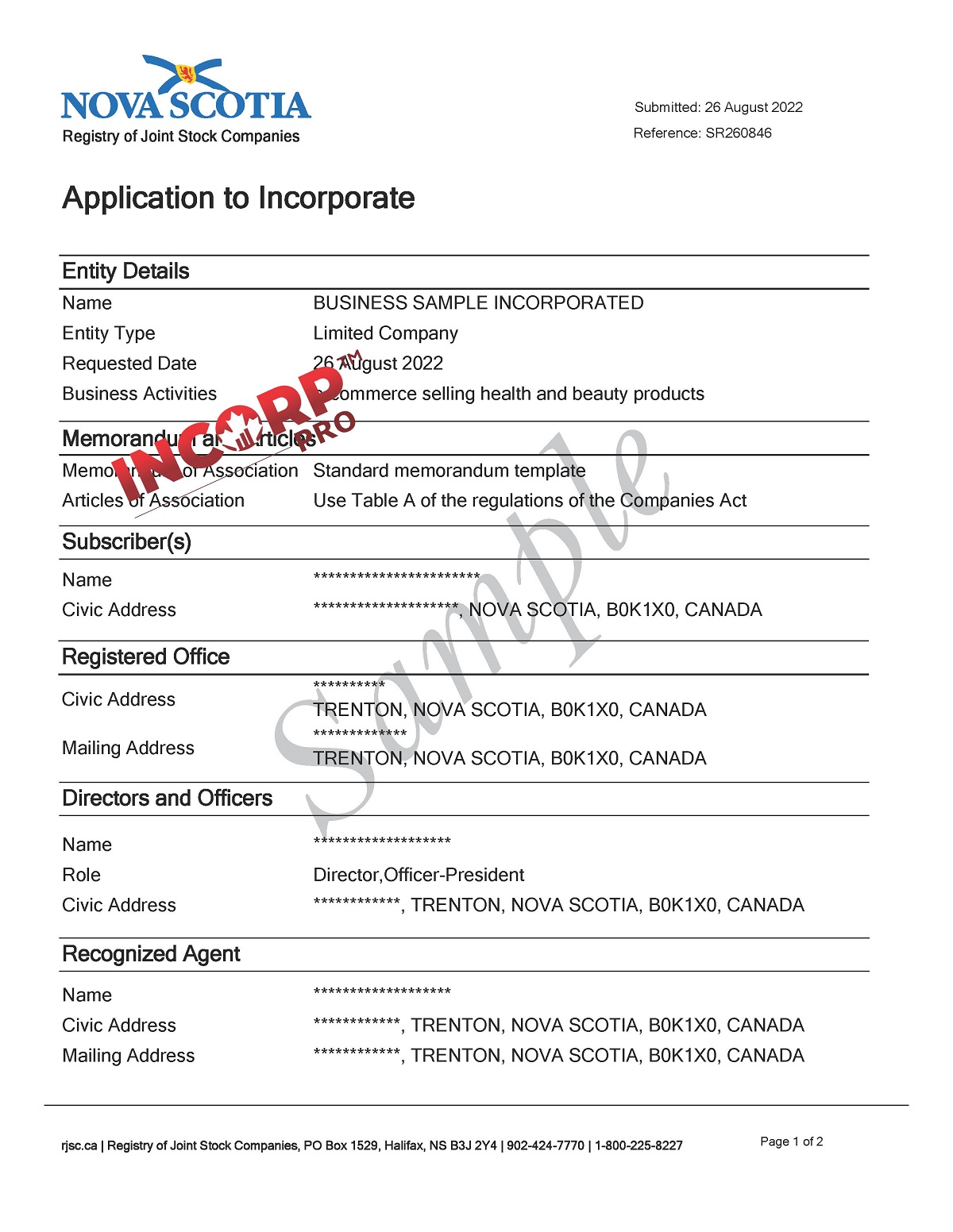 Sample of Application of Incorporation